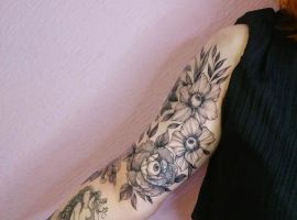 - Рукав. Интересно будет смотреться цветочная композиция и в виде рукава, начиная от запястья заканчивая локтем.