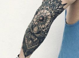 А вот идеи для мужчин чаще бывают объемными. Тату для мужчин должны проявлять мужские черты: стойкость характера, силу, уверенность, целеустремленность. А соответственно и образы должны быть серьезными и внушительными. Часто представители сильного пола выбирают рукава. Это сплошные композиции, покрывающие всю руку, от плеча до запястья, которые отлично подходят именно для парней.