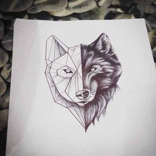 Тату волк с перьями символизирует внутреннюю силу, спокойствие. Считается, что такой рисунок защищает от злых сил. С перьями эскиз выглядит так, что они располагаются на голове животного или под ней.