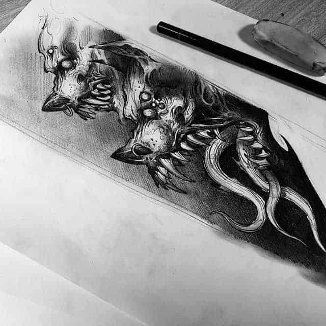 Ловец снов в сочетании с этим зверем имеет мистическое значение. Такой рисунок выбирают люди, верящие в потусторонние силы. Ловец снов защищает владельца татуировки от зла во время сна. Также можно найти много эскизов тату волка и ворона. Это символ мудрости, хитрости, умения хранить тайны.