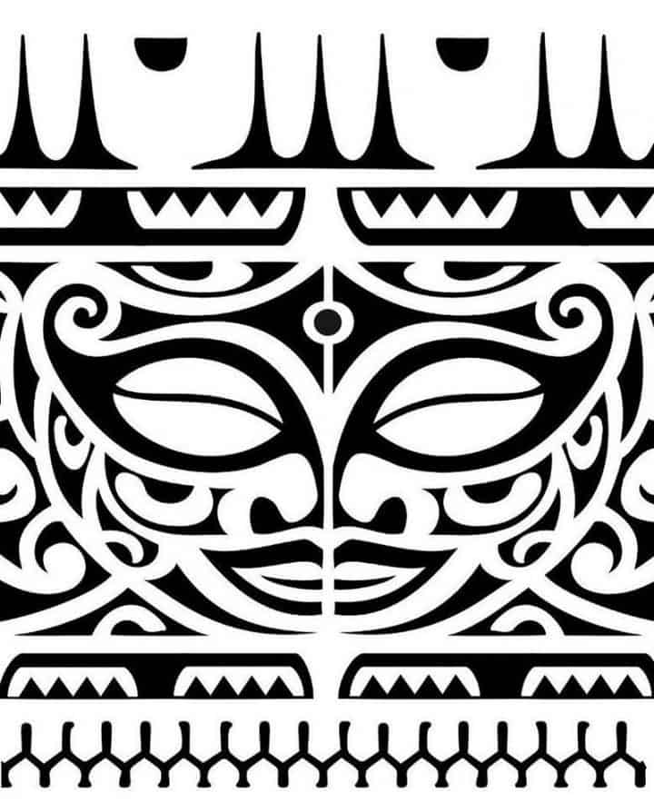 Маори изображают на теле ритуальные маски как обереги мужчин-воинов. Племена верят, что татуировка защитит в сражении, обеспечит удачную охоту, убережет от темных духов.