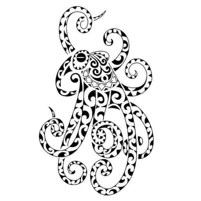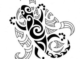 Еще один, как и черепаха, востребованный символ стиля полинезия, несущий глубокий сакральный смысл. Маори обычно изображали на теле конкретный вид рептилии – геккона. Называли его «moko», считали, что эта ящерица – предок человечества, могущественное существо, в которое вселяются божества для связи с людьми. Поэтому в Полинезии геккон символизирует достижение высших знаний, открытие божественного мира для хороших людей, а для плохих – смерть и разрушение.