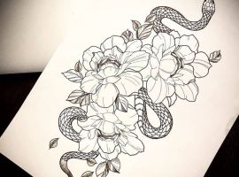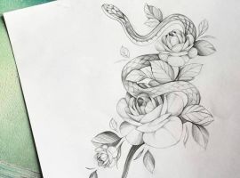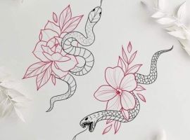 Девушки редко выбирают эскизы тату с одной лишь змеей. Рептилию дополняют следующие символы:
