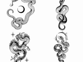 Тату змея эскиз – одна из самых распространенных идей. Тату змея эскиз не только выглядит стильно, но и обладает глубоким смыслом. Существует мнение, что змея – негативное тату. В действительности изображение имеет двоякое значение: рептилия указывает на опасность, но, с другой стороны, подчеркивает полезные, даже положительные черты характера. Точное значение тату змея для девушек эскизы определяется внешними особенностями рептилии и дополнительными символами.