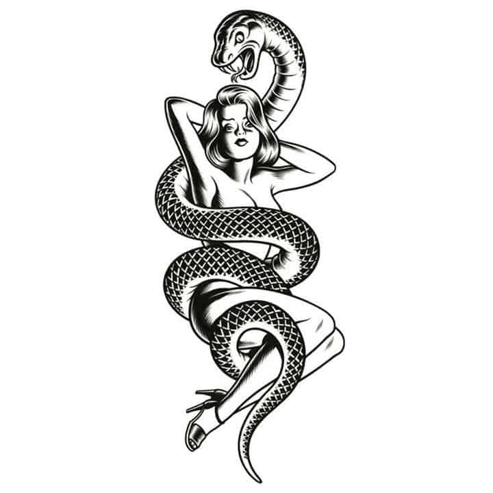 Змею набивают на теле уверенные, смелые, нацеленные на успех девушки. Татуировка не подходит нежным, романтически настроенным натурам. Змея – тату для стерв и «хищниц». Обладательница тату коварна, прозорлива, хитра, проницательна, умеет добиваться поставленных целей, соблазнять мужчин, юлить, выпутываться из сложных ситуаций. С такой девушкой нужно оставаться осторожным.