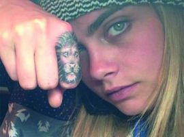 Одной из первых татуировок Кары можно назвать тату на пальце. Сделала она этот рисунок уже в далеком 2013 году. Татуировка символично изображает голову льва. Нужно отметить, что в мире художественной татуировки лев как символ означает стремление доминировать, лидерство, величественность. Предпочитают изображение льва люди, которые стремятся показать себя в лучшем свете, стать уважаемыми и популярными. И, нужно отметить, татуировка со львом отлично подходит Каре, ведь она действительно стала знаменитой и узнаваемой на весь мир.