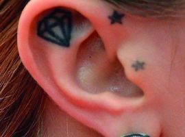 У Кары есть и другие интересные татуировки. К примеру, это две буквы D, римская цифра XII сбоку под грудью на ребрах. Есть магическая и сакральная надпись Сак Янт на спине. Сделала Кара эту татуировку в Таиланде. Считается, что эта надпись защищает и придает жизненных сил. На ухе у модели располагается символ бриллианта прямо внутри хряща. Бриллиант в мире художественной татуировки является символом, который подчеркивает исключительность человека, ведь бриллиант – то очень рекой и очень дорогой камень. На виске около уха расположены несколько звездочек, что также символизирует тягу к известности и беззаботной жизни.