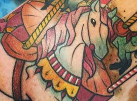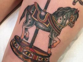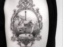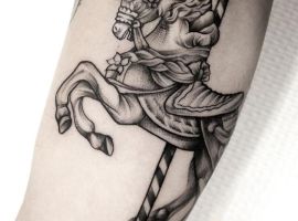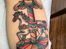Но несмотря на это у тату с каруселью будет совсем иное значение. Запечатленная именно «в процессе» карусель с лошадьми символизирует неразбериху, непонятные обстоятельства, ненужный бег по кругу и постоянную суматоху.