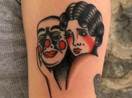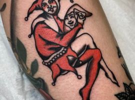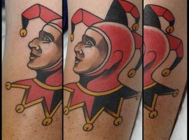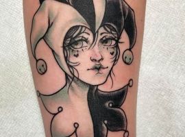 В таком случае арлекина татуировка будет означать, что человек выступает в ярой оппозиции к толпе, которая его унижает и оскорбляет. Владелец тату прячет себя под маской, но в тоже время будет защищаться от атак извне.