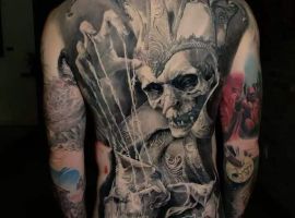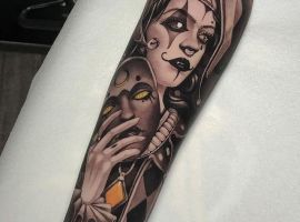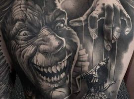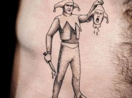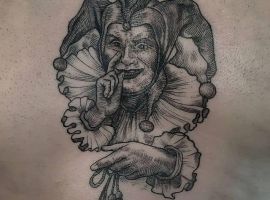Есть совершенно разные идеи для выполнения тату на теле: треш-полька, реализм, ньюскул, графика, дотворк и многое другое. Что конкретно значит тату шута на теле зависит и от манеры исполнения, и от «характера» образа клоуна, и от выбранного сюжета.