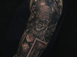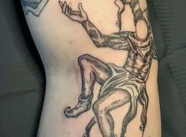 Но клоун – это еще лицедей, который попрал нормы морали и нравственности. Он своей яркой и нелепой раскраской доказывает, что ему ничего не стоит унизить окружающих и задеть их за живое. Тату Джокера как нельзя лучше подойдет под эту категорию. Рисунок заявляет о нестандартных взглядах и мышлении человека.