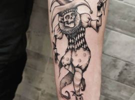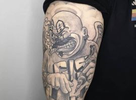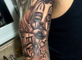 Клоун тату – это одно из самых неоднозначных изображений на теле. В зависимости от манеры исполнения смысл такой татуировки может кардинально меняться. В одном случае клоун будет сугубо позитивным символом, вдохновлять и радовать. В другом случае – это страх, переживания, депрессия…Но вне зависимости от того, какой смысл татуировки с клоуном выбран, можно обращаться в тату-салон Альянс. Мастера выполнят идеальный эскиз, а потом и саму тату на теле.