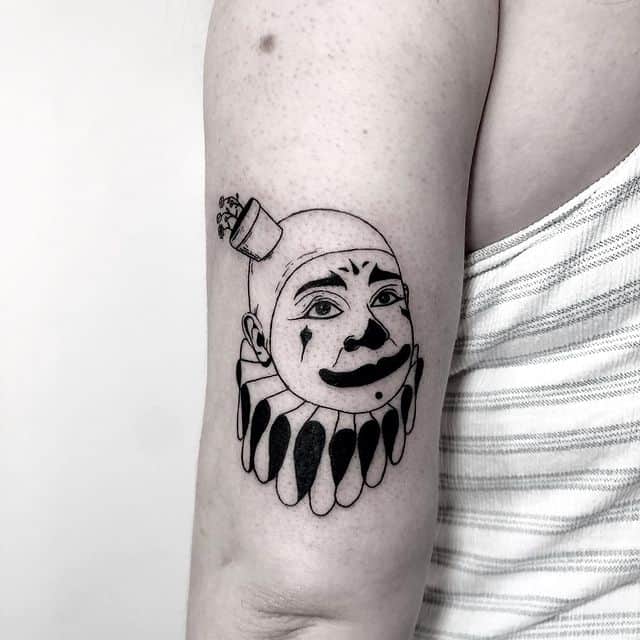 - Позитивные. Их легко выявить по добродушному выражению лица, округлым контурам, минимальном контрасту. У такой тату клоуна значение будет положительное. Скорее выберет такой рисунок человек добродушный, веселый и легкий на подъем.