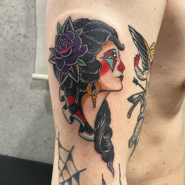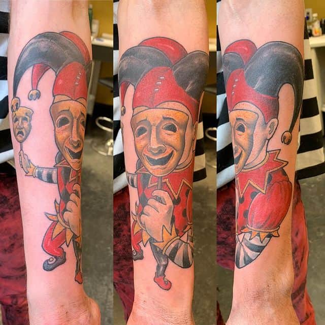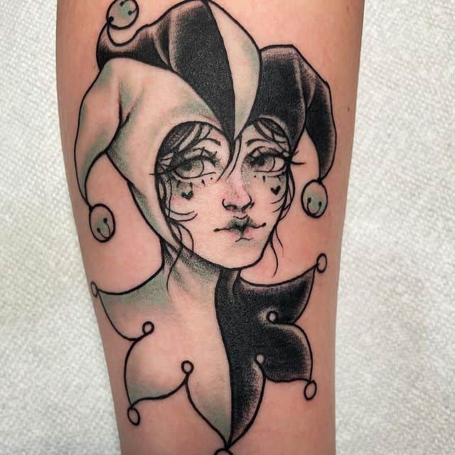 В таком случае арлекина татуировка будет означать, что человек выступает в ярой оппозиции к толпе, которая его унижает и оскорбляет. Владелец тату прячет себя под маской, но в тоже время будет защищаться от атак извне.