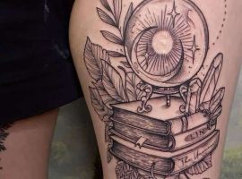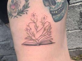 Тату с изображением книги набивают творческие натуры, которые не признают никаких стереотипов и предпочитают яркую жизнь. Для таких девушек данное тату является своеобразным талисманом, который помогает получать вдохновение.