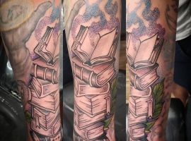 С древних времен книга была символом мудрости, возможности получить новые знания. В современной мире изображение не утратило актуальности, такая тату книга означает стремление к новым знаниям, интеллект.