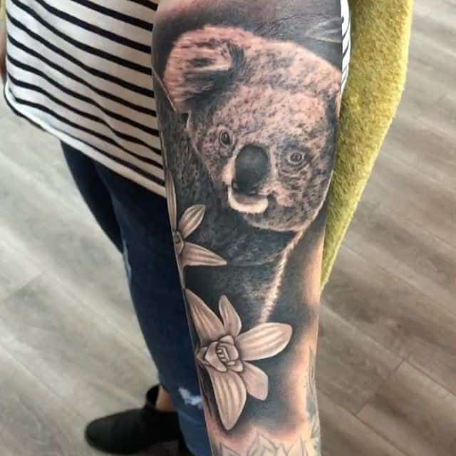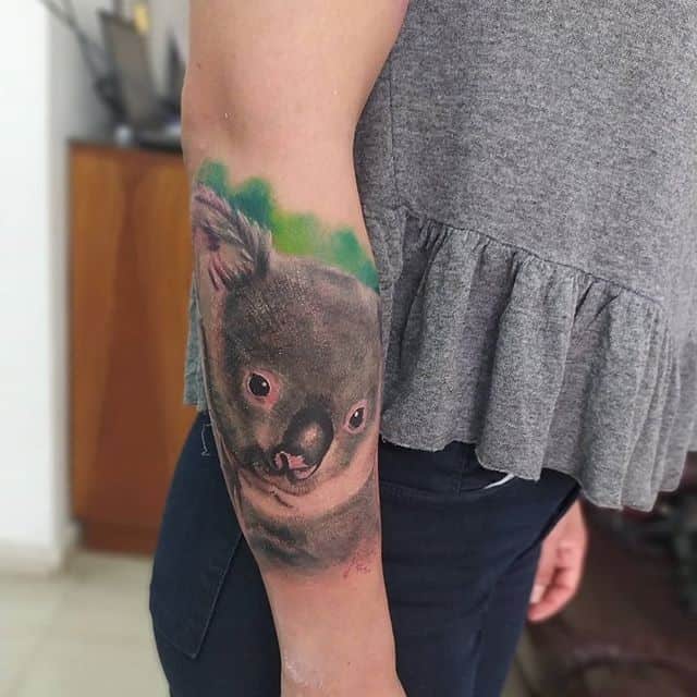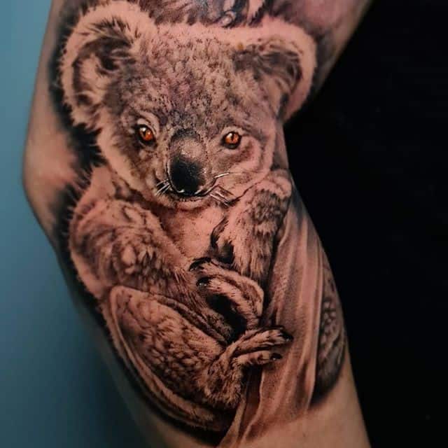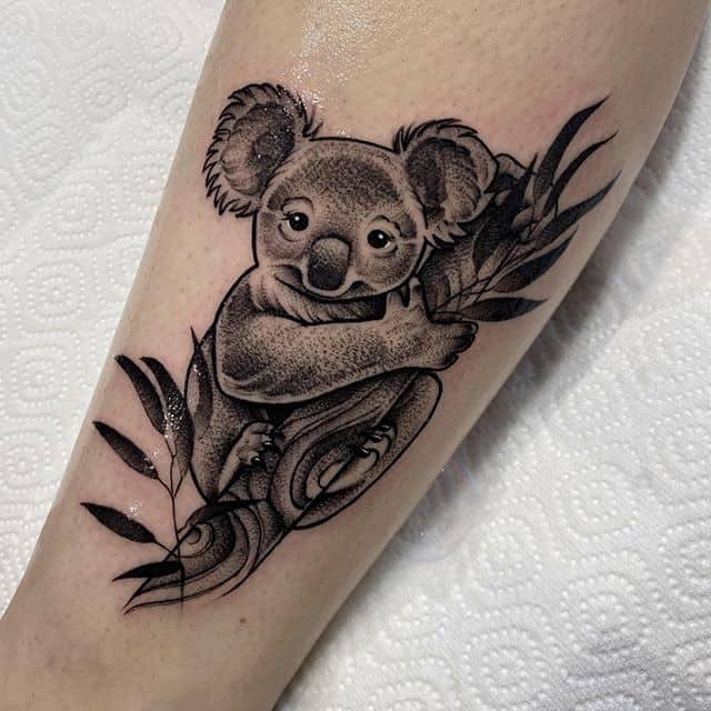 Татуировки с коалами выбирают люди чаще всего, обращая внимание на внешность этого серого медведя с плюшевой шерсткой. Он кажется довольно милым и добродушным. Но на самом деле коала вполне может постоять за себя и проявить агрессию, если ее жизни и «интересам» что-либо угрожает.