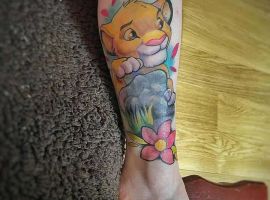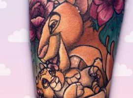 - львица Нала. Такое тату понравится тем, кто ценит романтику и либо ждет встречи со своей второй половинкой, либо уже нашел свое счастье;