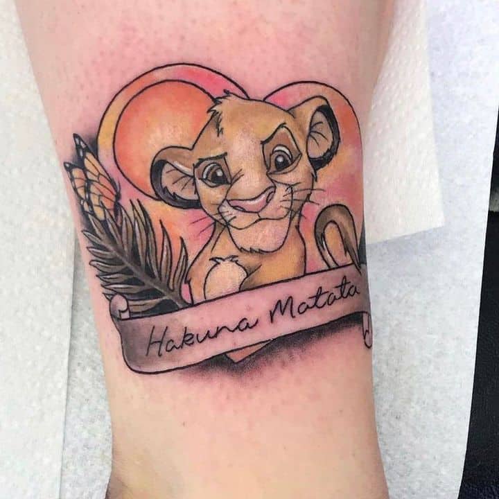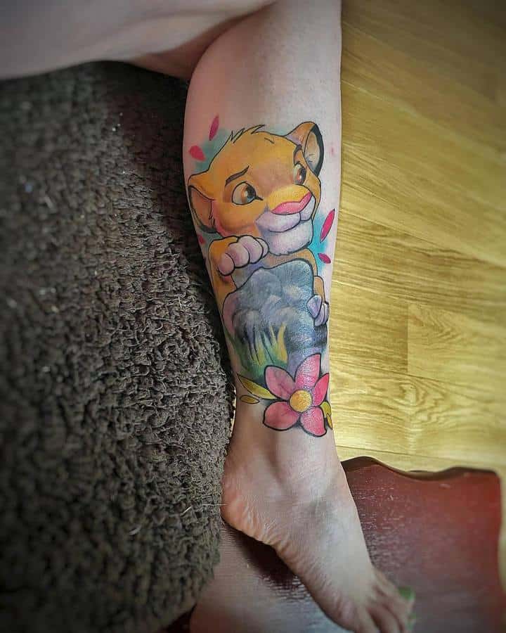 - львица Нала. Такое тату понравится тем, кто ценит романтику и либо ждет встречи со своей второй половинкой, либо уже нашел свое счастье;