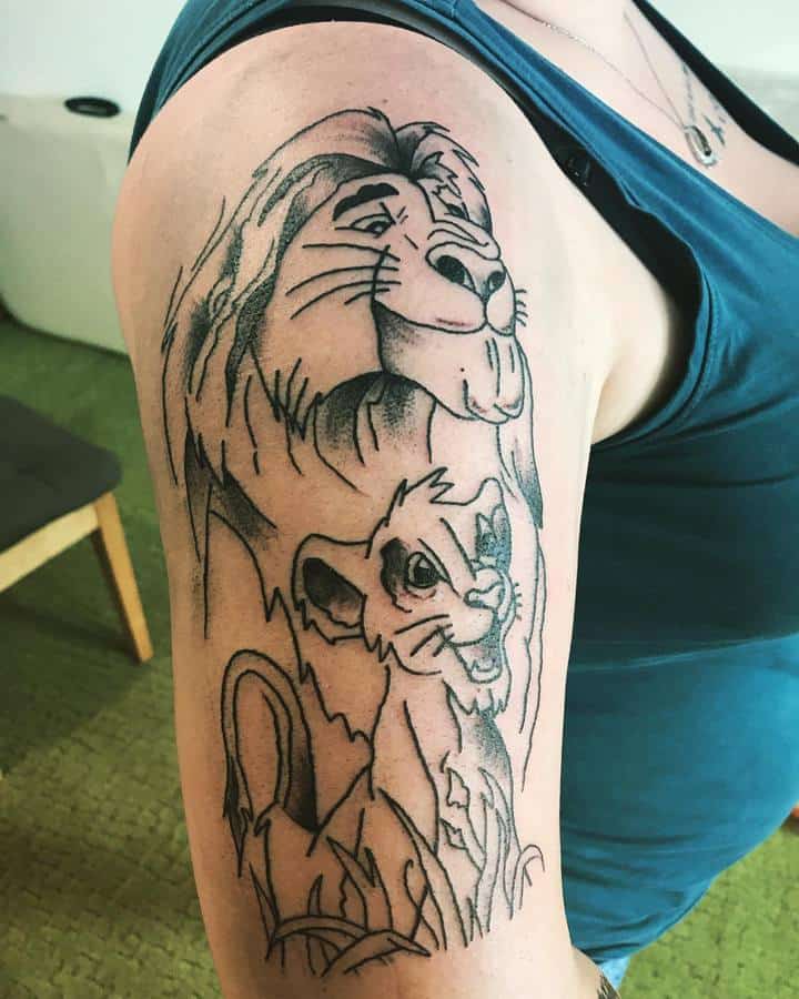 - отец Симбы. Погибший король лев был важен для главного героя, служил для него примером в жизни. Поэтому татуировка подойдет тем, кто любит своих родителей и прислушивается к их советам либо потерял их, из-за чего перенес сильные страдания;