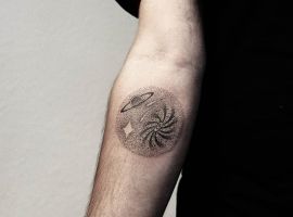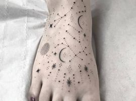 Если желание делать большую композицию отсутствует, можно выбирать символические образы. Например, часто люди делают татуировки с расположением небесных тел, которое было на небе во время какого-либо значимого для них события. В этом случае можно изобразить в виде точек, соединенных тонкими линиями, как на астрологической натальной карте.