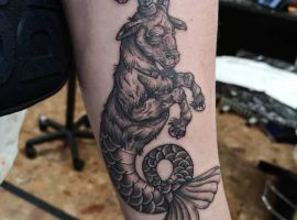 Наши мастера в Киеве выполнят тату со знаком Козерог в любом стиле. Примеры выполненных работ вы можете посмотреть в «Портфолио». Обращайтесь!