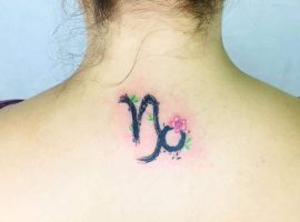 Козероги относятся в земной стихии. Это сказывается на их темпераменте. Это люди рассудительные, осмотрительные. Они не будет идти по головам ради достижения своей цели, но в любой момент готовы придумать нечто такое, что поможет им. Обычно выбирают они небольшие и малозаметные татуировки. Дело тут в природной скрытности, им не нравится, когда каждый любопытный человек будет в курсе их предпочтений. Но, конечно, есть и исключения из правил. Можно увидеть стильные масштабные татуировки на теле, в которых есть как масса цветов и оттенков. Так и масса дополнительных элементов.