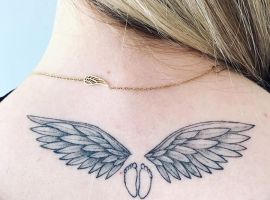 - Невинность – этим смыслом наделяет тату «ангельская» природа.