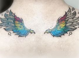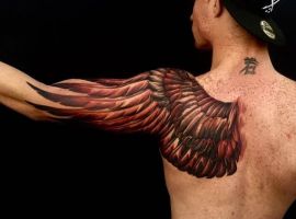 Очень необычно смотрятся тату на спине. Крылья в этой области рассказывают о том, что человек склонен к творческому полету. Выбирают такие изображения люди свободолюбивые, порывистые, честные и смелые. Но в некоторых случаях эти черты характера могут восприниматься окружающими негативно, родственники и друзья считают, что человек сильно демонстрирует свое превосходство.
