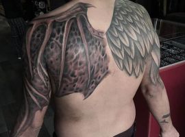 Но в тоже время могут украшать спину не только ангельские милые крылышки. Становятся популярными и крылья демона. Нельзя однозначно сказать, что человек принадлежит к сатанизму только по наличии одной той тату. Но то, что в ней заложен скрытый тайный смысл можно гарантировать. Выбирающий крылья демона человек точно знает, что в этом мире есть много плохого, и каждый может выбрать сторону добра или зла самостоятельно.