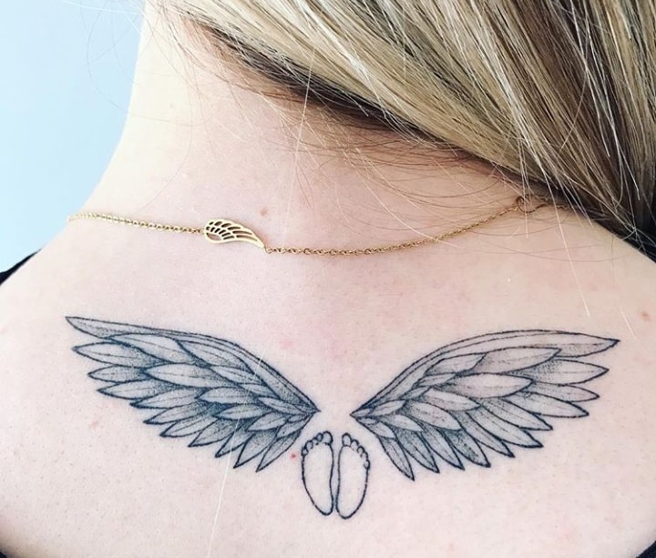 - Невинность – этим смыслом наделяет тату «ангельская» природа.