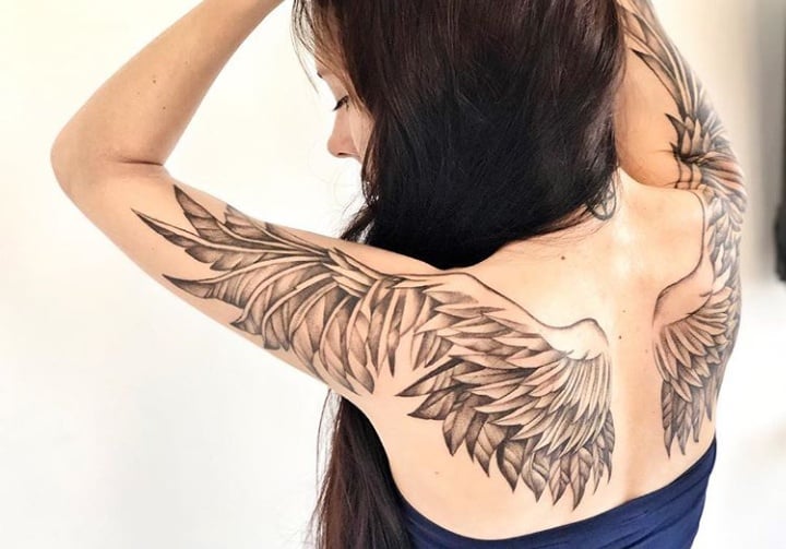 Женские тату имеют несколько иные значения. Многое зависит именно от размера крыльев и манеры их исполнения. Небольшие, аккуратные крылья рассказывают о легкости, изяществе. Отлично смотрятся они на лопатках. В тоже время яркий, реалистичный рисунок говорит о скрытой силе, о том, что женщина может отстоять свои права во что бы то ни стало. Довольно часто тату крылья на спине у девушек комбинируют с другими изображениями, к примеру, ангелами, бабочками. Такой рисунок никого не оставит точно равнодушным, он заставит окружающих остановиться и любоваться девушкой с такой татуировкой на пляже летом.