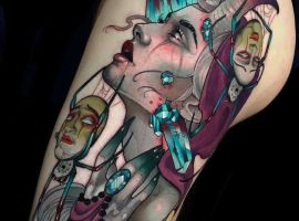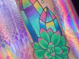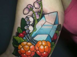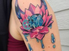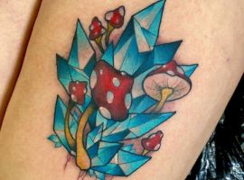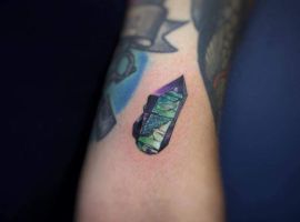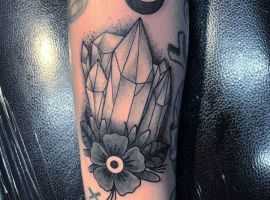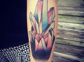 Стилей, в которых выполняется татуировка с кристаллами, тоже масса. Тут уже все зависит от вкуса. Любители монохромных работ обращают внимание прежде всего на графику, дотворк, геометрию. Интересно смотрятся работы с 3д эффектом. Если хочется более яркий вариант, то подойдет ньюскул или акварель.