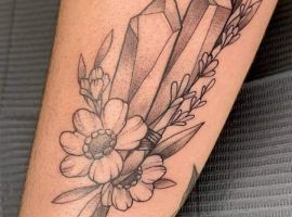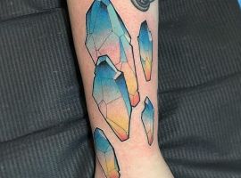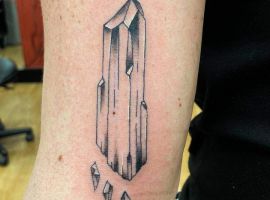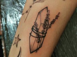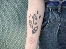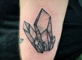 Изображения с кристаллами встречаются одинаково часто как у мужчин, так и у женщин. Обычно это относительно небольшой эскиз на руке, запястье, ключице…Но по сути местом расположения тату можно выбрать совершенно любой участок на теле, в том числе и зону предплечья, бедра, икры.