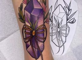 Конечно, наши мастера в Киеве готовы выполнить тату с кристаллом в любом стиле. Они передадут структуру камня и его цвет. Можно посмотреть примеры работ в «Портфолио».