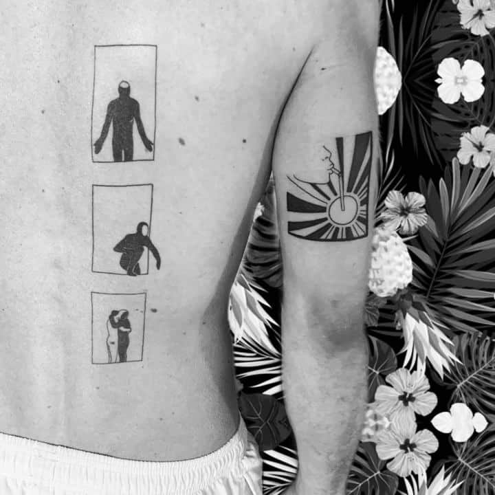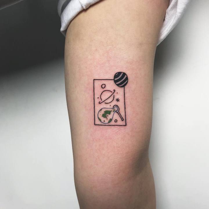 Эти фигуры можно сделать небольшими, изобразить их схематично или в цвете, соединить с другими символами. Выполнять тату можно в стиле геометрия или минимализм.