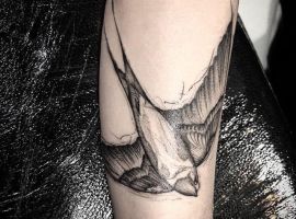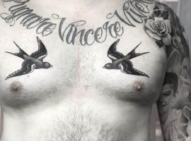 Мужчины наносят это изображение на плечи, ключицы, внизу живота, на предплечье. При чем правша выберет правую руку, а левша – левую. Самые смелые выбирают вариант тату ласточка на шее. В поиске оригинальной идеи можно обратиться к опытному тату-мастеру салона Альянс в Киеве, который поможет подобрать эскиз тату, или создаст его специально для Вас.