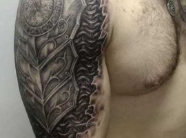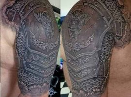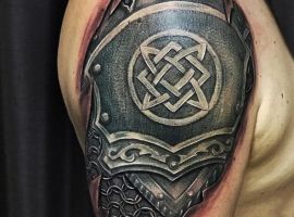 - Популярное место для тату доспехи на плече. Для мужчины они символизируют внутреннюю силу, твердый характер и уверенность.