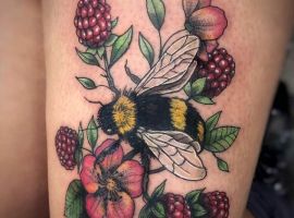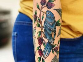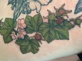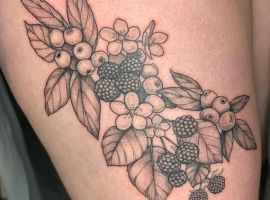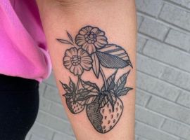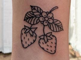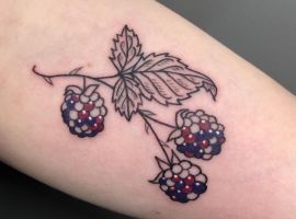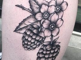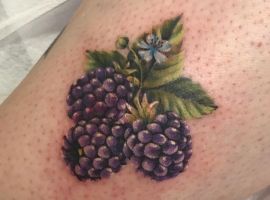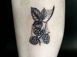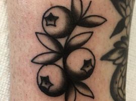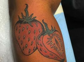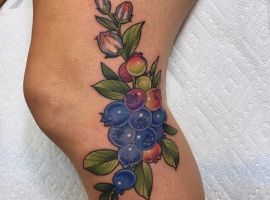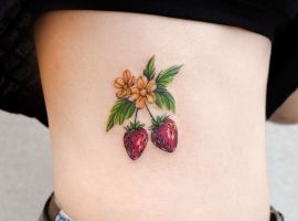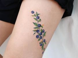 Тату с земляникой или черникой достаточно популярны. Эти ягоды олицетворяют молодость женского тела, девственную красоту, чистоту. Земляника очень сочная ягода, поэтому она обозначает флирт, соблазн, удовольствие. Черника больше говорит об индивидуальности и утонченности человека.