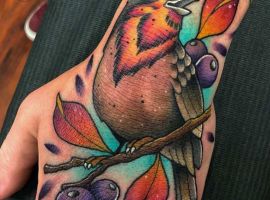 Тату с изображением брусники свидетельствует о потребности во внимании со стороны представительниц прекрасного пола. Такой человек жаждет знакомств, он любит посещать тусовки и флиртовать с девушками.