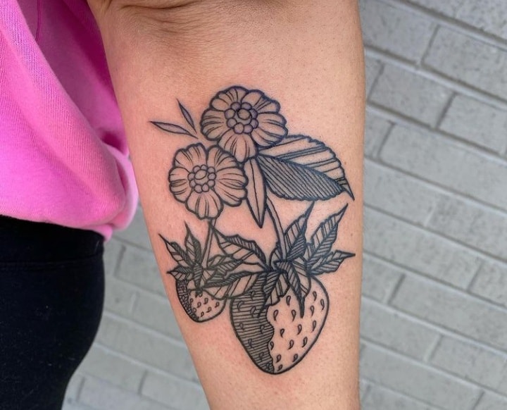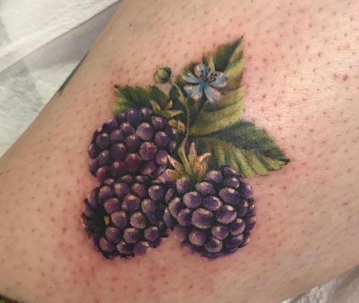 Тату с земляникой или черникой достаточно популярны. Эти ягоды олицетворяют молодость женского тела, девственную красоту, чистоту. Земляника очень сочная ягода, поэтому она обозначает флирт, соблазн, удовольствие. Черника больше говорит об индивидуальности и утонченности человека.