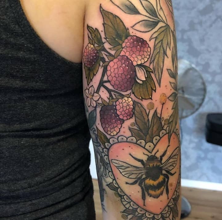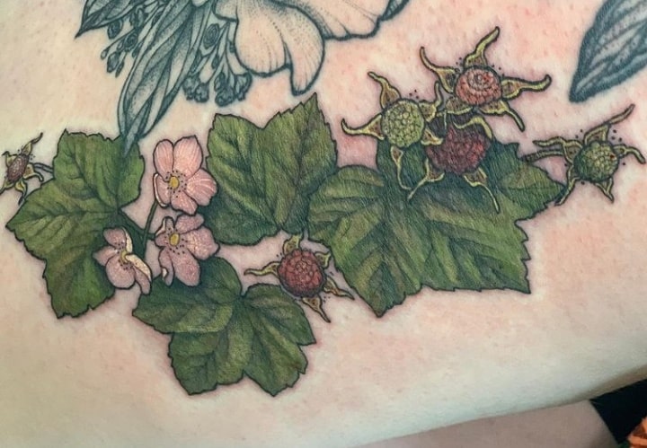 Сочетаются разные эскизы ягод со следующими тату на теле: