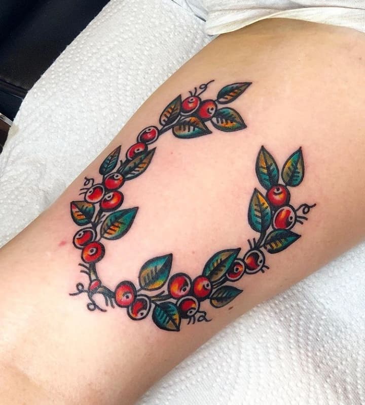 Действительно, яркие и сочные ягодки выглядят очень нежно и оригинально на всех участках тела. Тату привлекает к себе восхищенные взгляды, а обладатель рисунка собирает комплименты.