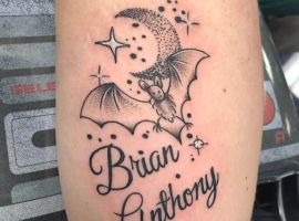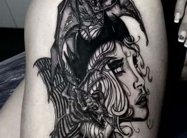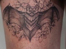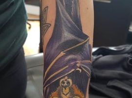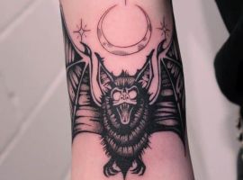 Тату летучая мышь на теле – это многозначительный символ. Такое изображение может говорить как об агрессивности, так и о таинственности. А, возможно, что это и знак мужчины, который служил в разведке. Чаще это летающее млекопитающее изображают на темном фоне около луны. Но могут быть и другие, более неординарные варианты. В любом случае мастера тату салона Альянс выполнят для вас идеальный эскиз, а потом и саму татуировку.