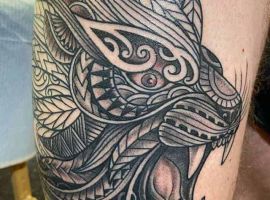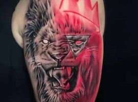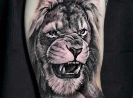 4. Изображение морды зверя с оскалом говорит о том, что его обладатель имеет в характере темную сторону, которая может проявиться в любой момент, если человека раздражать. Интересно, что в обычных условиях вероятно человек будет очень спокойный и тихий, а вот в стрессовой ситуации покажет агрессию и темперамент. Реалистичная тату лев оскал часто выбирают для подчеркивания этой двойственности.