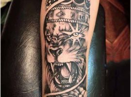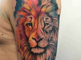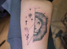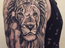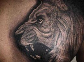 1. Во-первых, татуировка лев в полный рост можно встретить очень редко. В основном выбирают только морду зверя. Считается, что такой нательный рисунок способен защитить своего обладателя от неприятностей и стать таким себе оберегом на удачу.