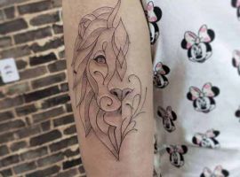 3. Татуировка король лев из одноименного мультфильма также довольно популярна. Эскизом для этого может стать любой сюжет мультика. Часто также набивают маленького Симбу, мама львица и львенок. Такие идеи присущи людям с приоритетом семьи, семейных ценностей. Отдельно татуировка львицы означает материнство и опеку. С львенком оно символизирует веру и надежды на будущее. А взрослый мультяшный персонаж передает значение власти и превосходства.