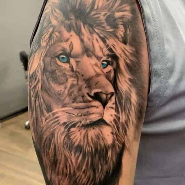 Мужчины предпочитают стиль реализм. Набивают тату льва на плече, как цветным, так и ч.б. Эскизом обычно служит фото зверя. Тату на предплечье мужские или тату льва на ноге интересно будут выглядеть в графике, дотворке, геометрии. На этот момент реалистичная тату лев с элементами геометрии набирает популярности среди клиентов.