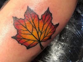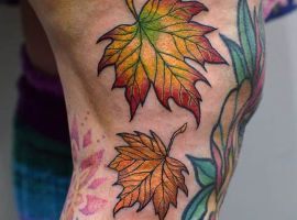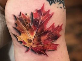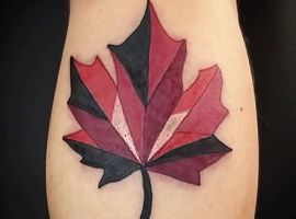 Кленовые листья – это символы Канады. Но не стоит думать, что значение тату кленовый лист будет хоть чуть-чуть связно с этой страной. На самом деле такой рисунок говорит об уважении, открытости, мире, добре и дружелюбности.
