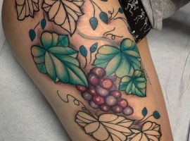 Татуировки с листочками винограда – это символ людей-гедонистов. Для них важно потакать своим желаниям. Связно это с тем, что именно из винограда делается вино.